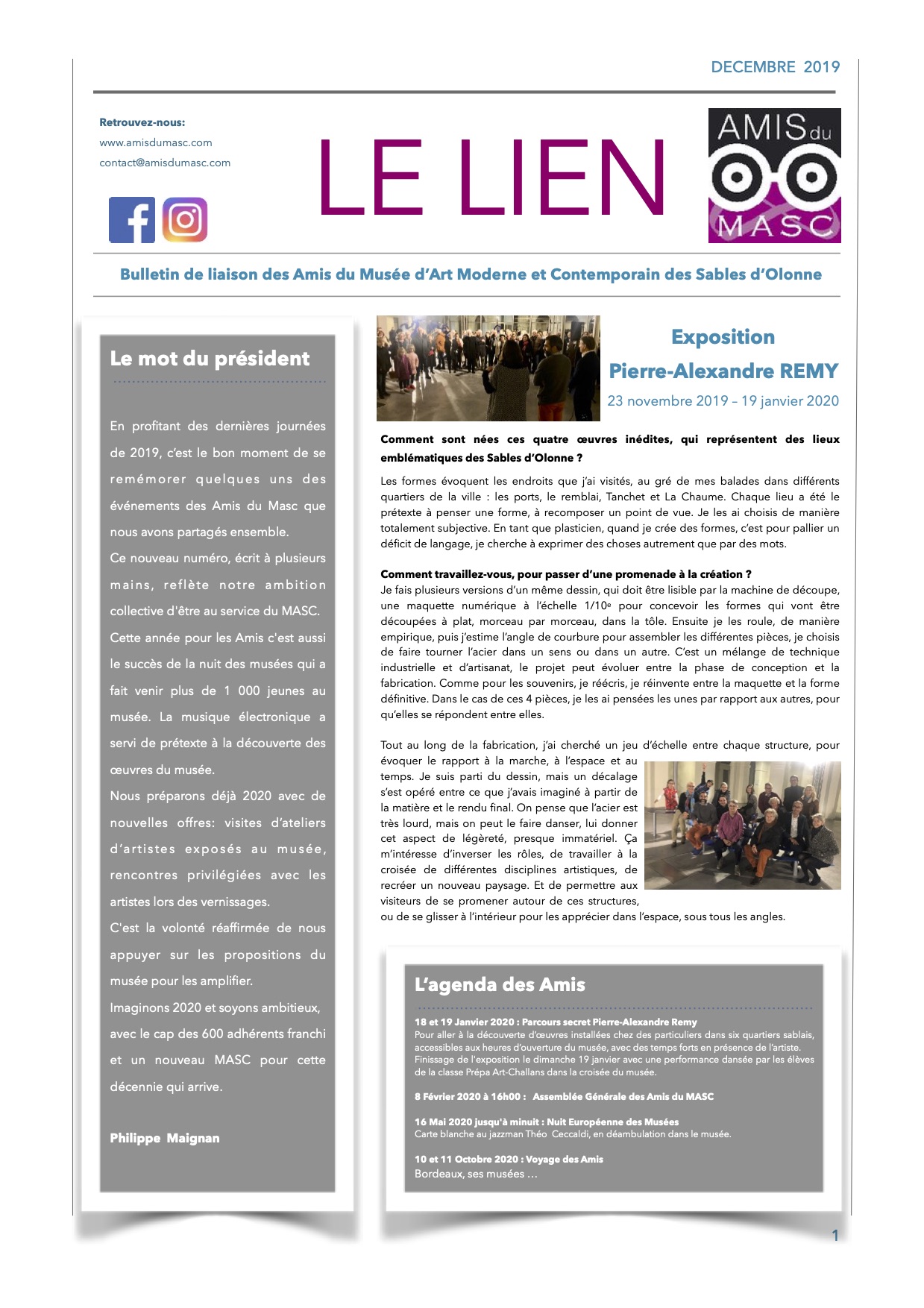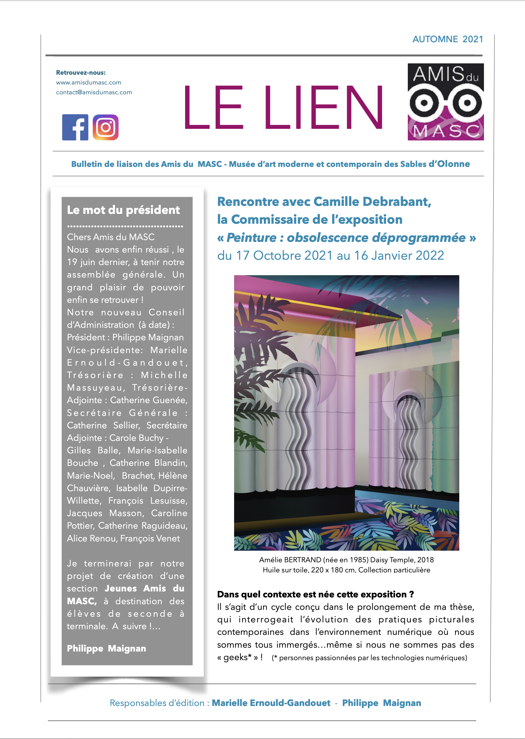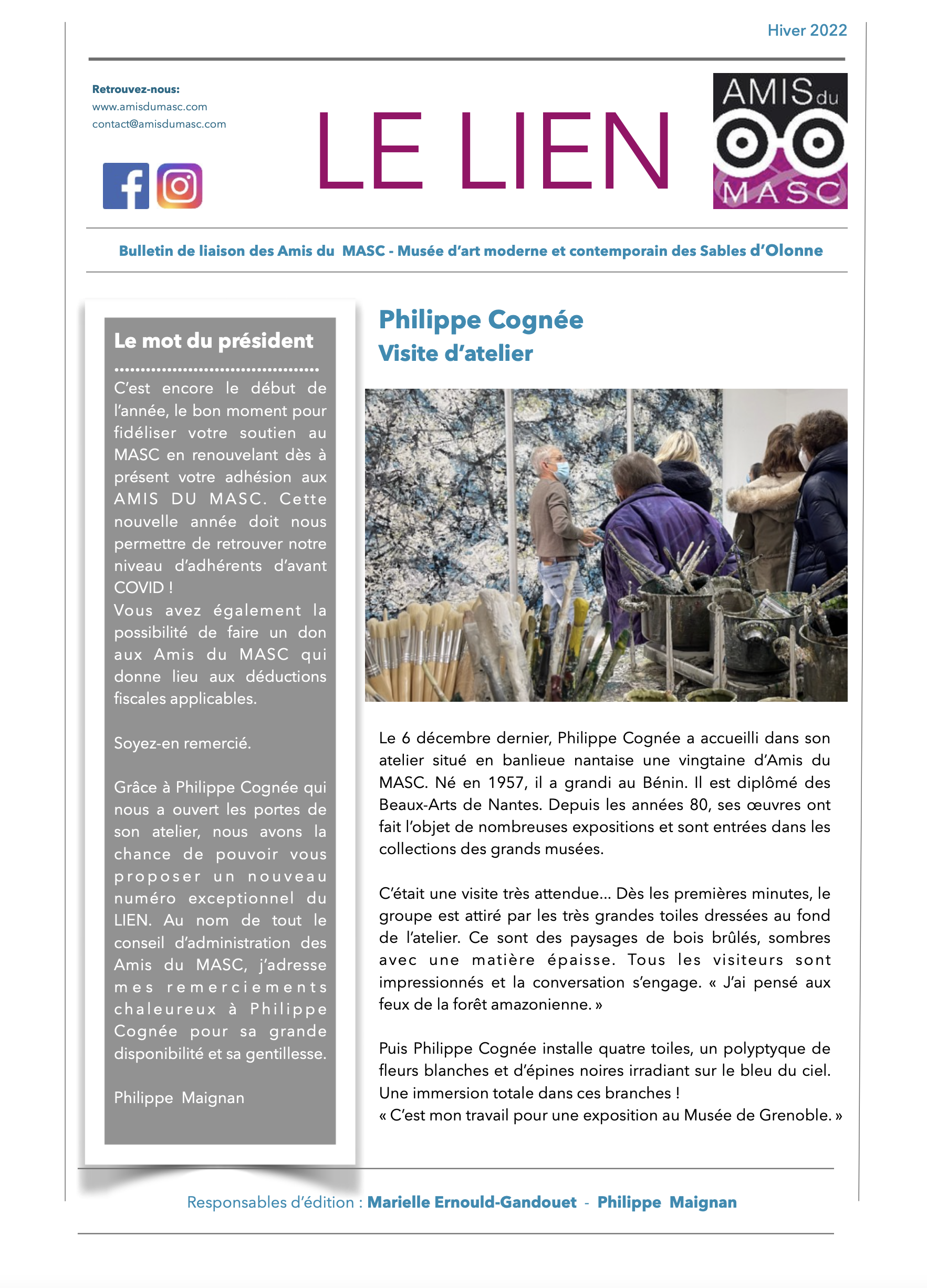 AUTOMNE - HIVER 2025 Téléchargez la brochure Feuilletez Nos anciens numÉros Amis du MASC – Une LE LIEN été 2025 Cliquez sur l’image pour découvrir le sommaire